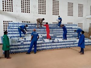 In line with our values, we’re now ‘thinking big’ and ‘acting urgently’ to do more. Since early April, we’ve delivered 1,600 tons of soap for handwashing (equivalent to the weight of ~250 African bush elephants!), 34,000 liters of chlorine for disinfecting (enough to fill 3 cement mixers), and hygiene education to help over 4 million people (about the population of Los Angeles) protect themselves against COVID-19. More deliveries will take place over the next few weeks.