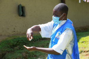Helen Keller worked as part of the Global Alliance for Vitamin A consortium, known as GAVA, to develop guidelines for safe delivery of vitamin A during the pandemic. The guidelines were informed by the World Health Organization and the government of Kenya’s recommendations for social distancing and other methods for controlling and preventing the spread of COVID-19. Health workers and volunteers must strictly limit their proximity to children when delivering vitamin A. They may approach each child only for long enough to drop the liquid vitamin A dose into a child’s mouth. Then they must step back a meter and a half (roughly five feet). They may no longer enter families’ homes, and they must wear masks at all times. They also use hand sanitizer before and after each distribution. There is a long list of additional requirements for health agent training, hand hygiene, and safe behavior in health centers.