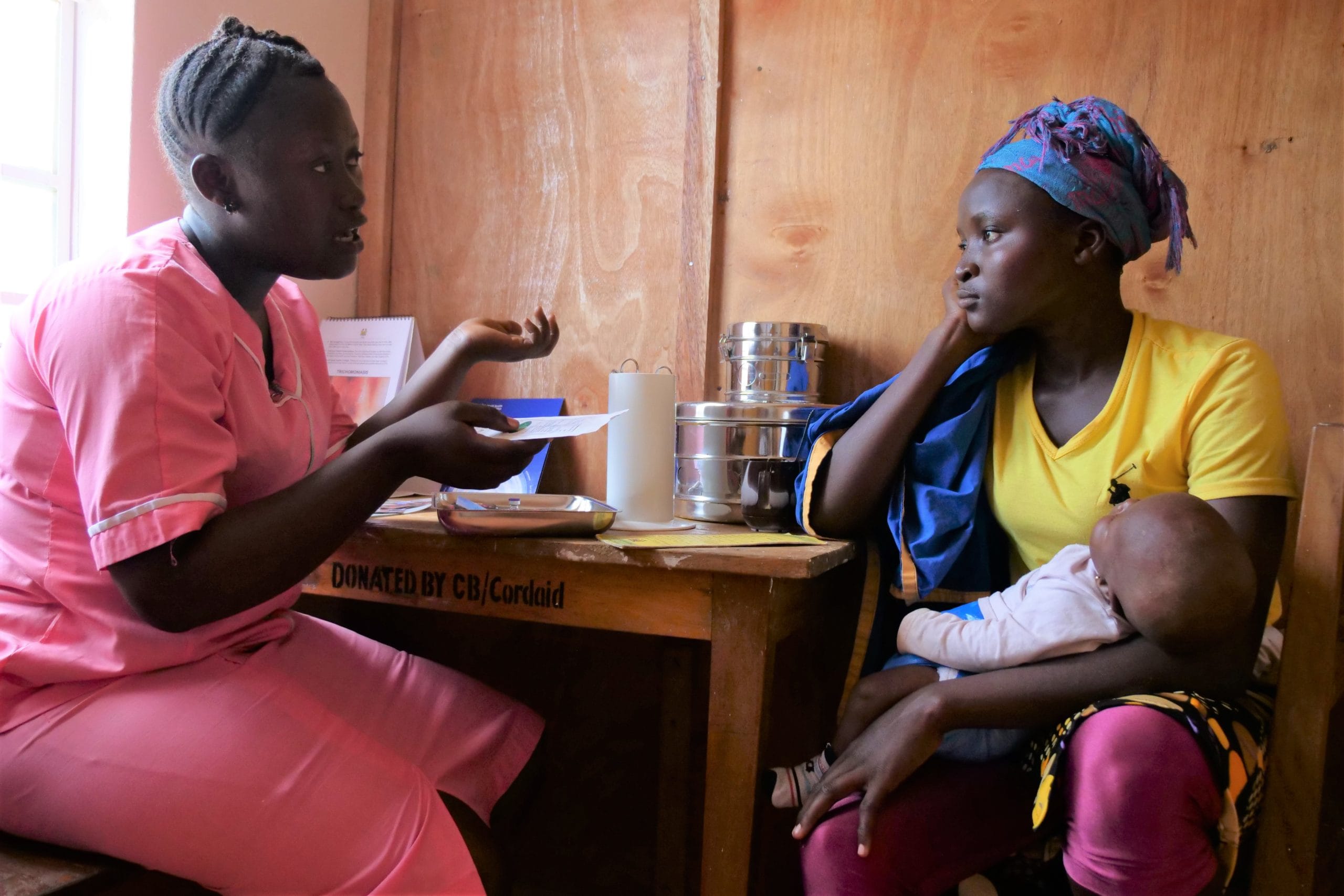After being weighed and measured, the mothers and their children circle back to the nurse’s table, where they learn about optimal infant and young child feeding practices like complementary feeding – that is, nourishing infants from six months to two years of age with solid foods in addition to breastmilk – and how to diversify and integrate nutritious local foods into both the children and the mothers’ diets.