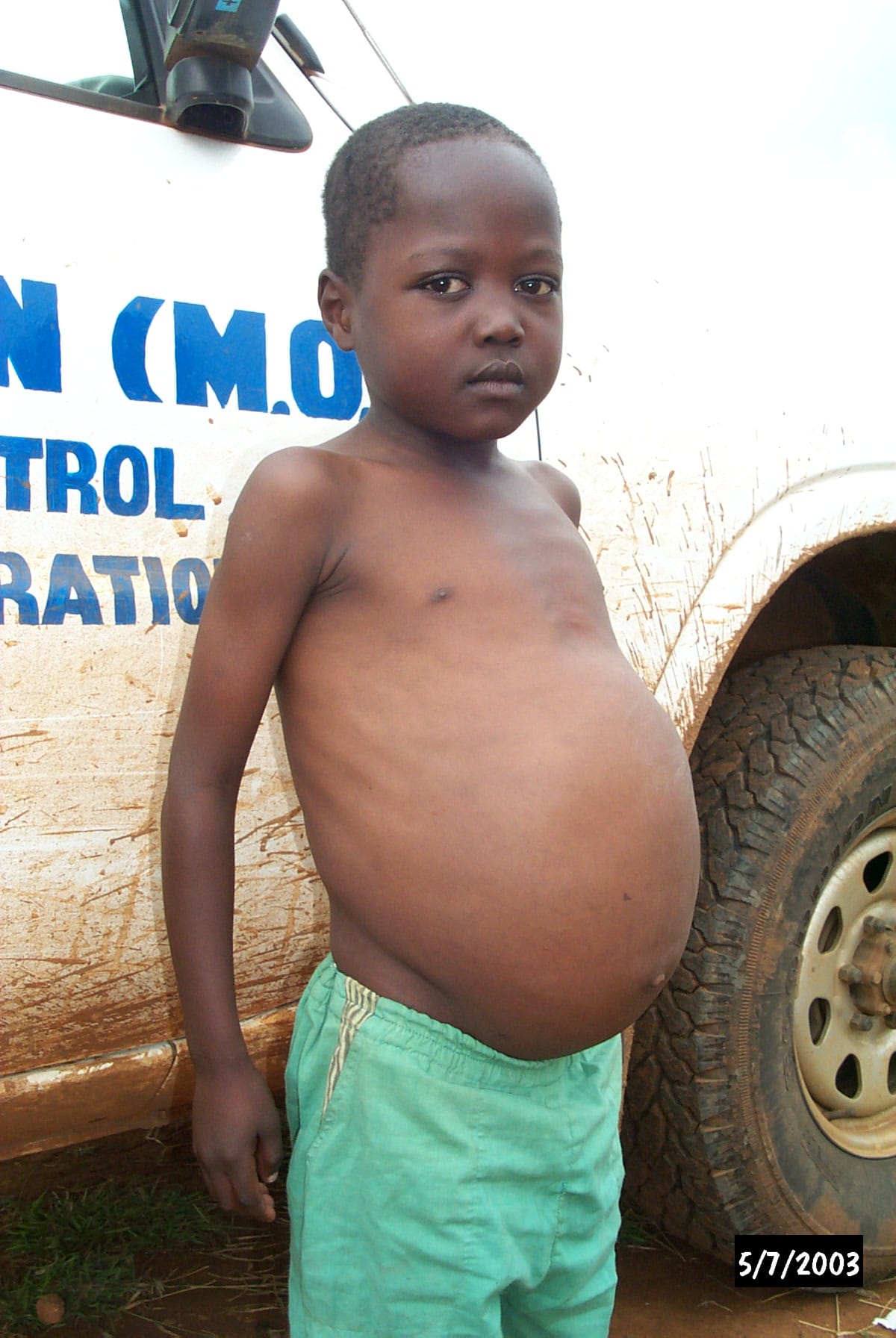A child infected with schistosomiasis. About 200 million people are inflected with schistosomiasis worldwide. Photo credit: SCI