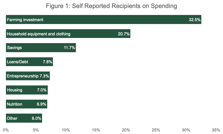 Anecdotally, recipients reported that increased household spending helped them integrate into their host communities: Olive said being able to buy better, untattered clothing let her children play with local Rwandan children without immediately standing out as “poor refugees” and gave her an increased sense of dignity. (Video above)