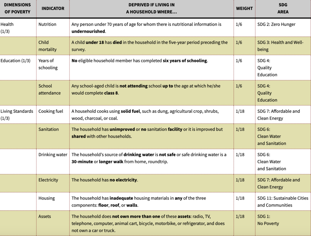 Source: Alkire, S., Kanagaratnam, U. and Suppa, N. (2020). ‘The global Multidimensional Poverty Index (MPI): 2020 revision’, OPHI MPI Methodological Note 49, Oxford Poverty and Human Development Initiative, University of Oxford.