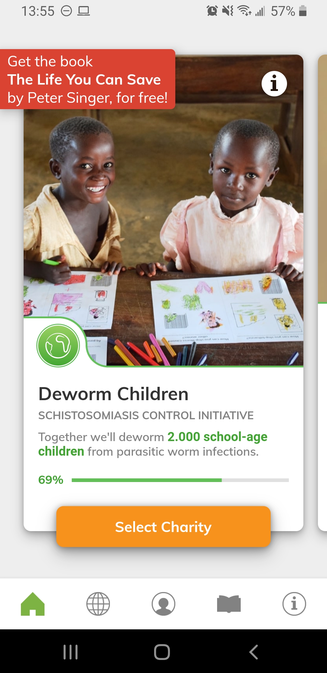 The Life You Can Save (TLYCS) app provides a new platform for collaborative giving and goal achieving. Work together with other users to complete giving goals across several of our chosen charities including SEVA, Project Healthy Children, and the Against Malaria Foundation. In addition to seeing global impact figures from all app-based donations, you can challenge yourself to earn badges such as “Mosquito Killer,” completing 5 donations to the Against Malaria Foundation, and “High Five” congratulating you for completing 5 donations.
