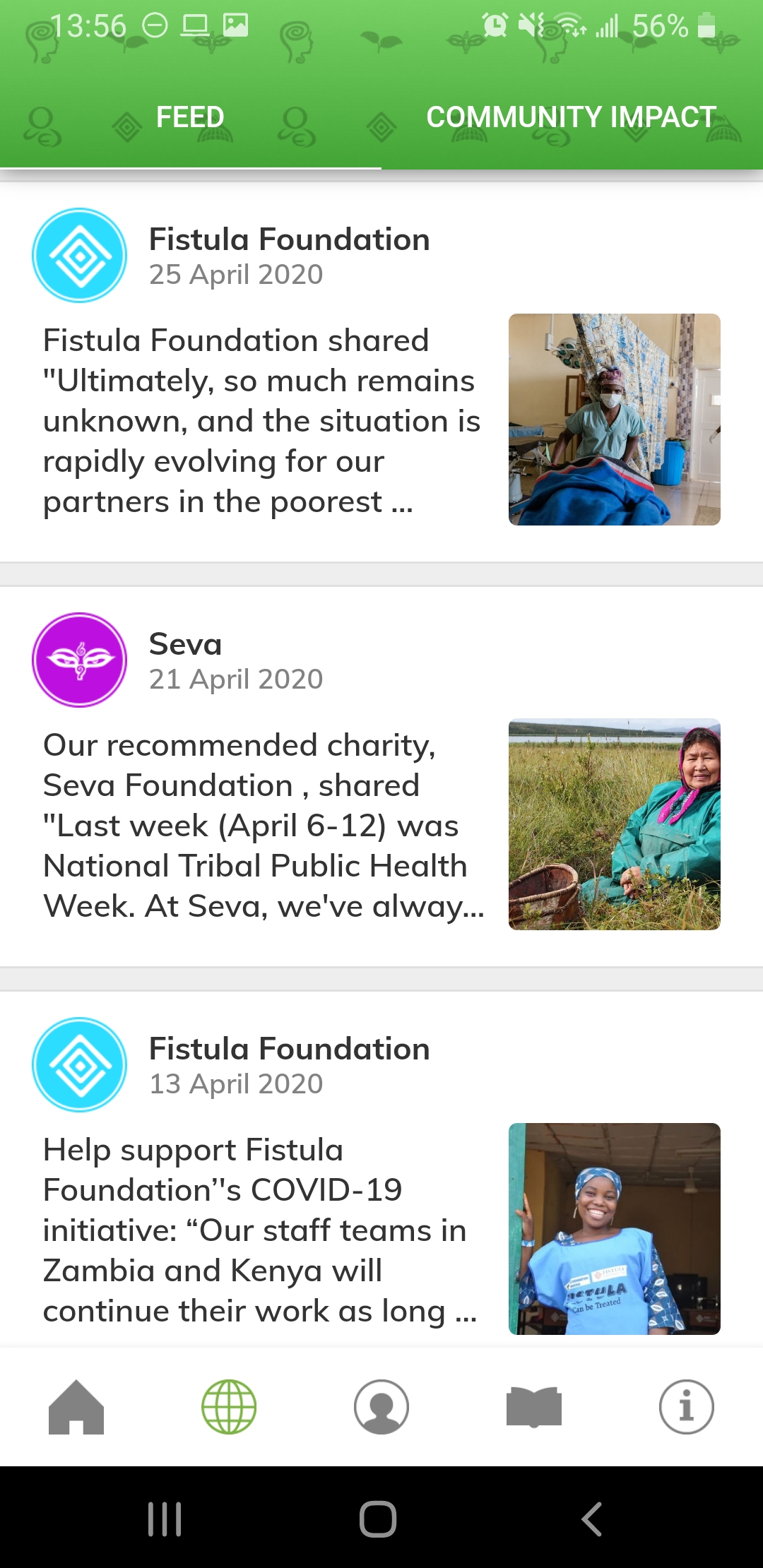 Interact with our global community of givers with our “Feed” feature enabling you to post and comment about your donations and like other’s donations.