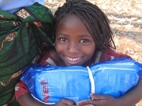 Then they purchase (typically) multiple millions of nets and team up with national health systems and other operational partners to ensure nets reach their beneficiaries as intended. An LLIN from AMF costs only US$2 and protects two people for up to three years. AMF’s work achieves “universal coverage,” which means all sleeping areas in a community or region are covered. This is the most effective way of driving down malaria.