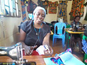 Metrine is working alongside other strong women, like Melania, a fistula survivor who is now a hairdressing instructor at WADADIA. When she heard that the tailoring department needed help, she traded her scissors for a sewing machine and decided to pitch in.