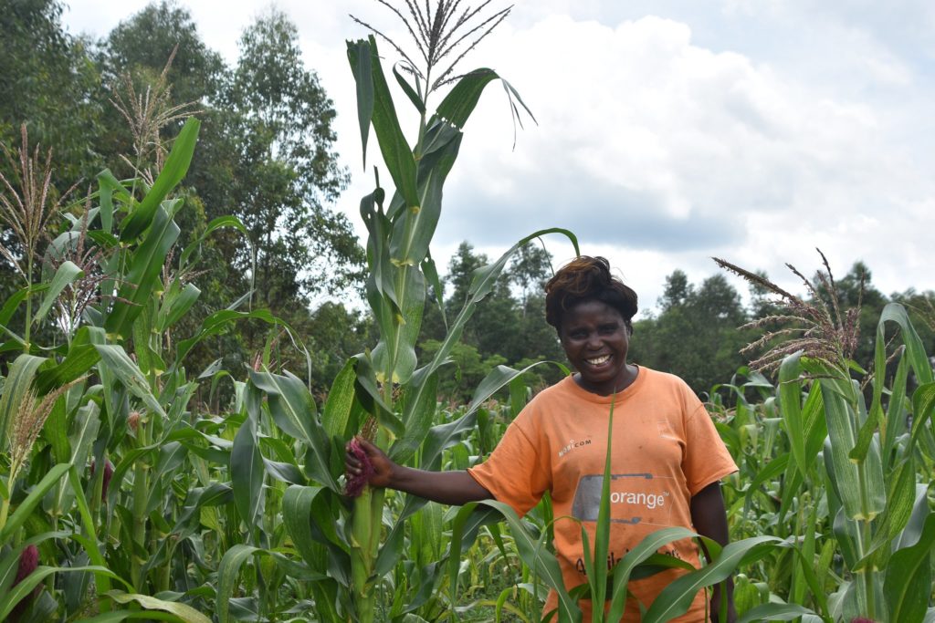 During her first season with One Acre Fund, she harvested 16 bags. “I was beyond myself. I could not believe that I had harvested that much. I remember dancing in my house. It was the best harvest I had ever received,” says Emily. After selling some, she was left with enough food for the rest of the year. Since she first joined, Emily switches between farming on a full acre or half, depending on how much credit she can afford in a particular season.