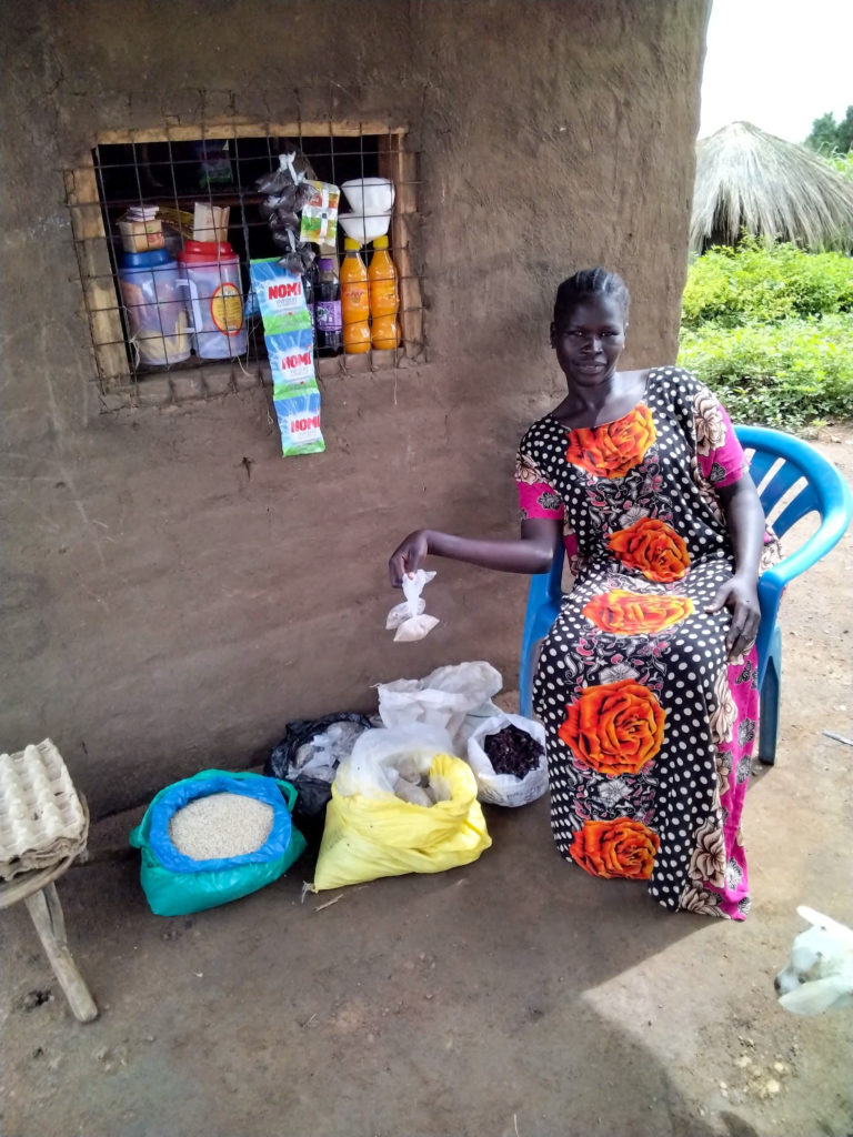 Originally from Mugo village in South Sudan, Anna came to Bidi Bidi in 2018, fleeing the civil war in her home country. Like many of the 270,000 refugees living in Bidi Bidi, a lack of economic opportunities has meant that Anna and her family are largely dependent on humanitarian aid for food, education, and healthcare—programs that have seen significant cuts due to the pandemic. However, Anna was recently selected for Village Enterprise’s DREAMS (Delivering Resilient Enterprises and Market Systems) program, and over the past few months, she has completed nine business and financial literacy training modules, received a seed capital grant, and successfully launched a retail business with two other first-time entrepreneurs in Bidi Bidi. As a result, she’s been able to better provide for her family.
